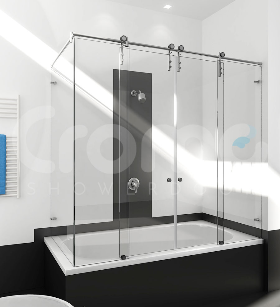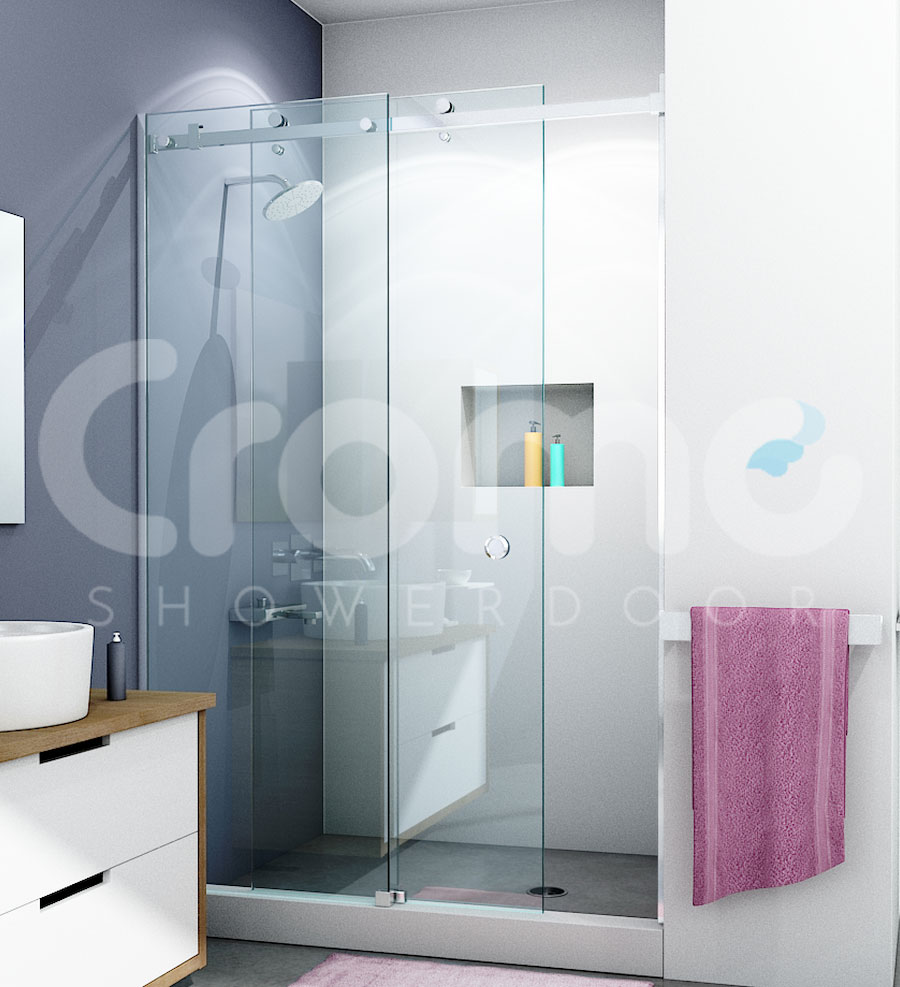 Combina herrajes en acero inoxidable o bronce cromado con características minimalistas cristales templados de 8mm sellos de pvc sistema de apertura a 90° como todos los modelos crome son personalizados y a medida.