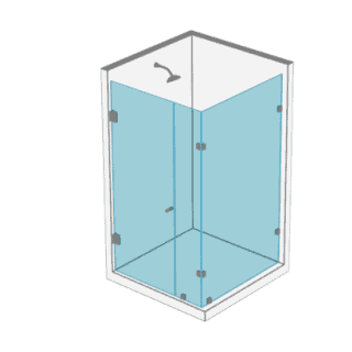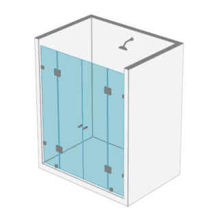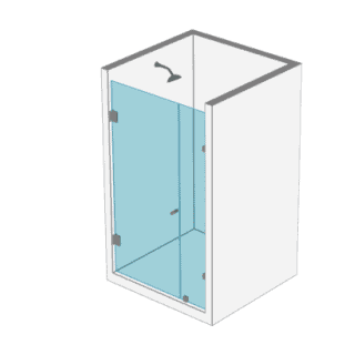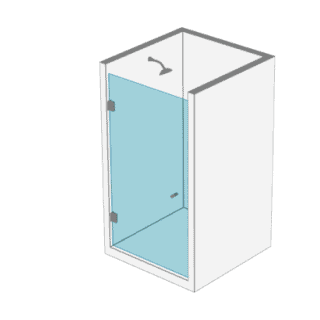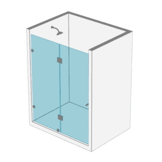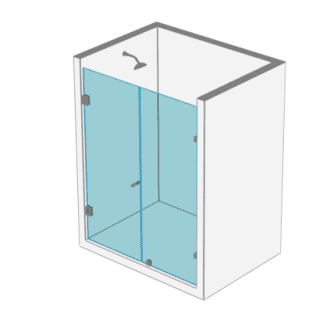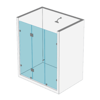 - 1 Puertas y 2 paños fijos a muro en cristal templado de 8 o 10 mm Posibilidad de apertura al interior o exterior del recinto