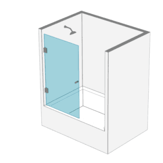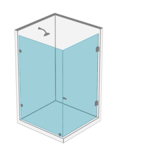 - 1 Puerta y 1 paños fijo en cristal templado de 8 o 10 mm posibilidad de apertura al interior o exterior del recinto