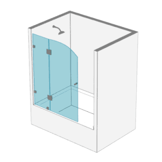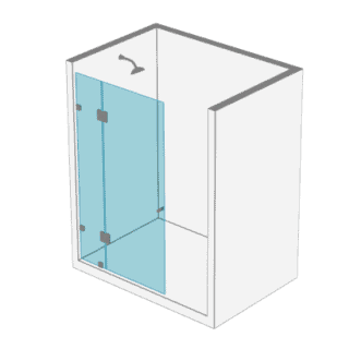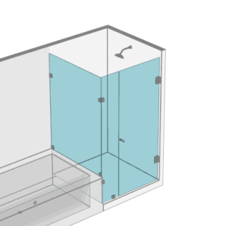 Una puerta a muro más un paño fijo en línea + un paño lateral a 90° sobre bañera muro.