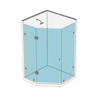 - 1 Puerta y 2 paños fijos en cristal templado de 8 o 10 mm posibilidad de apertura al interior o exterior del recinto